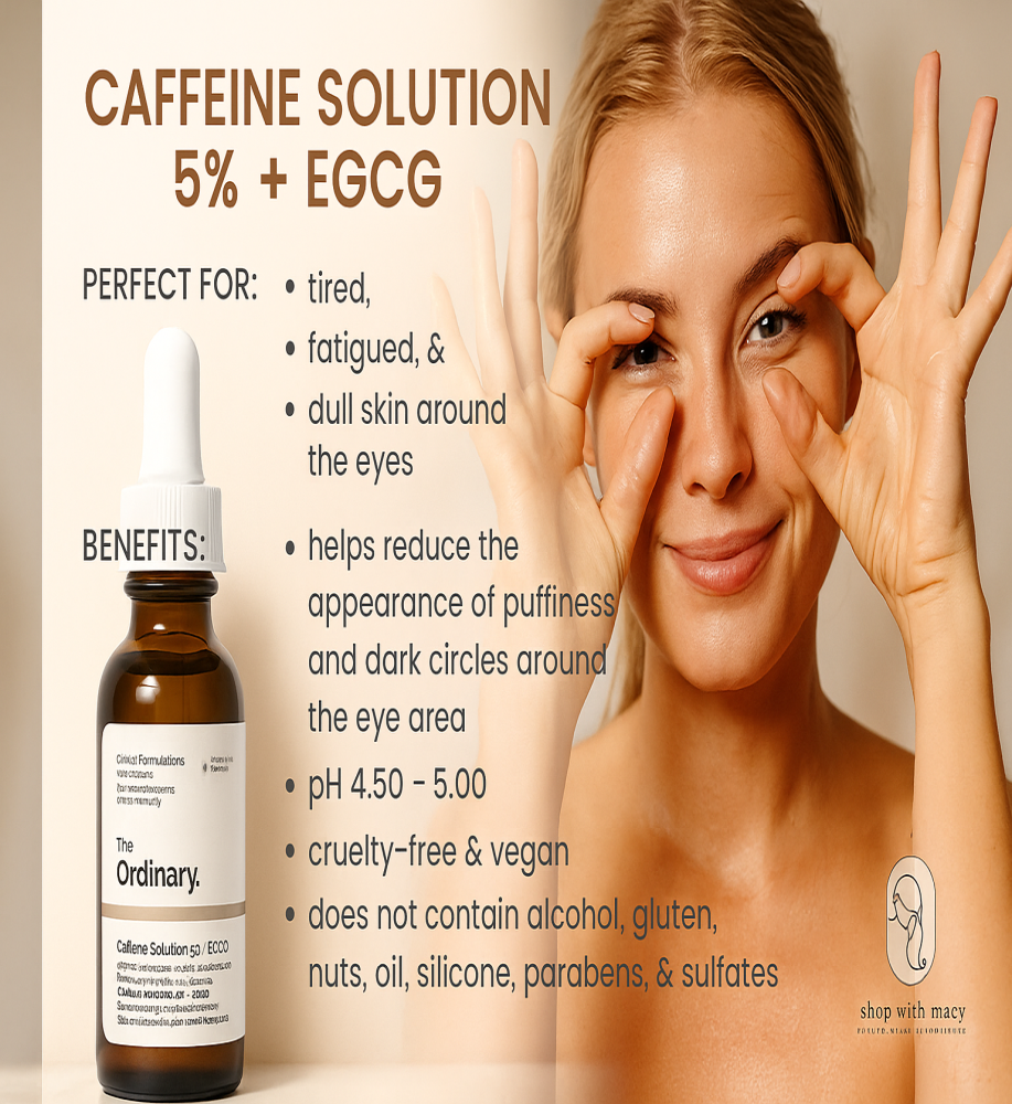 Caffeine Solution 5% + EGCG is a water-based serum that reduces the look of puffiness and dark circles in the eye contour. The formula works by combining a high concentration of caffeine with a highly-purified epigallocatechin gallatyl glucoside (EGCG).
